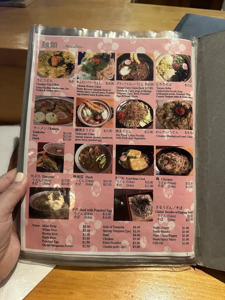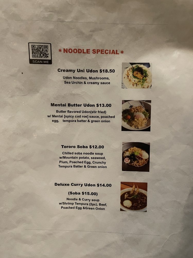 Chilled Soba Noodle soup w/Grated Mountain potato,seaweed,plum paste, crunchytempura batter, green onion