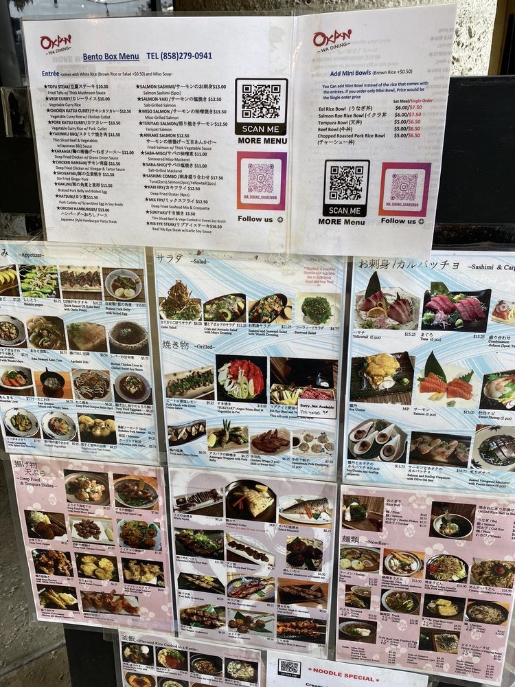 Welcome to Wa Dining OKAN, a cozy gem nestled in San Diego's Nijiya shopping center, specializing in traditional Japanese cuisine. This inviting eatery caters to diverse tastes with its extensive menu featuring highlights like the rich and flavorful Chicken Katsu Curry and the crispy, perfectly textured Takoyaki. Each dish promises authenticity, from the delectable Beef Tataki to the comforting Curry Rice Bento Boxes. Vegetarian and pescatarian options abound, ensuring everyone finds something delectable.